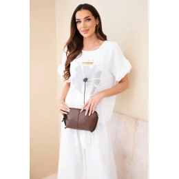 Dámský viskózový komplet s halenkou s potiskem a kalhotami bílý