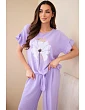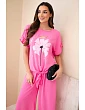 Dámský viskózový komplet s halenkou s potiskem a kalhotami světle růžový