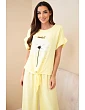 Široké kalhoty s elastickou gumou v pase a stahováním na šňůrku zajišťují pohodlné přizpůsobení postavě. Lehký, příjemný materiál na dotek činí komplet ideálním pro každodenní stylizace, procházky, setkání či dovolené. Italská výroba garantuje vysokou kvalitu zpracování a péči o detaily.