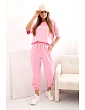 Dámský viskózový komplet s krátkým rukávem a nohavicemi bonbónově růžová