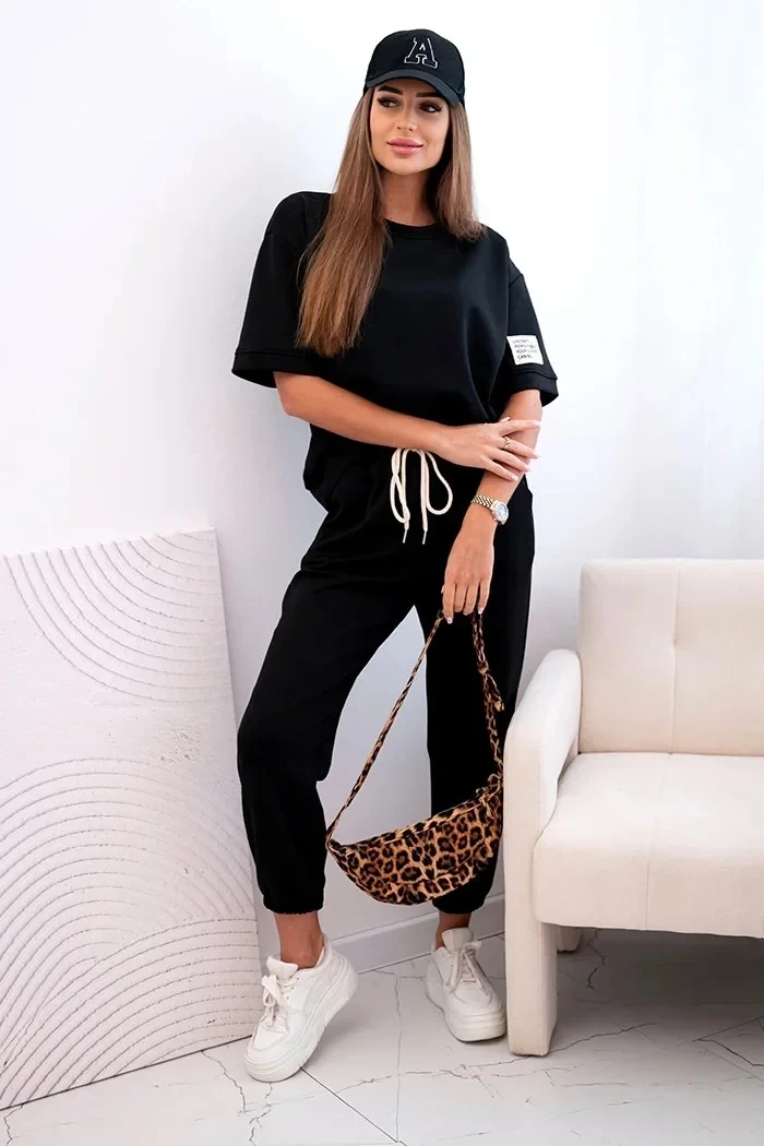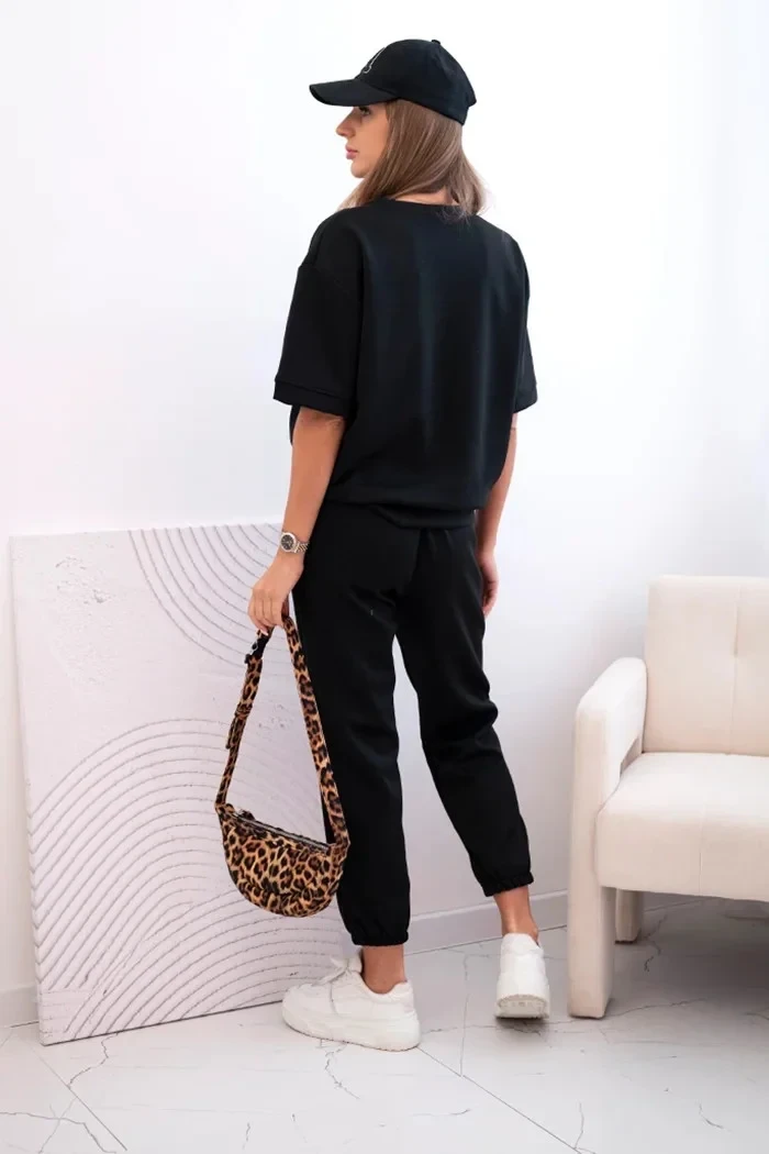 Dámský viskózový komplet s krátkým rukávem a nohavicemi černý