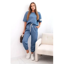 Dámský viskózový komplet s krátkým rukávem a nohavicemi džínový melír