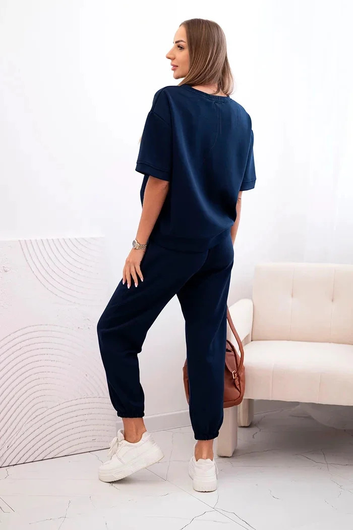 Dámský viskózový komplet s krátkým rukávem a nohavicemi námořnická modř