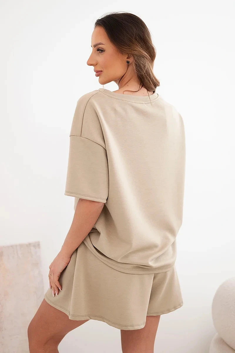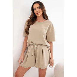 Dámský viskózový komplet s top s krátkým rukávem a kraťasy s vysokým pasem camelový model 22077196 - K-Fashion