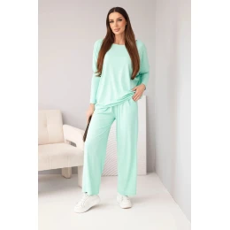Dámský viskózový komplet s volnou blůzou a kalhotami mátový