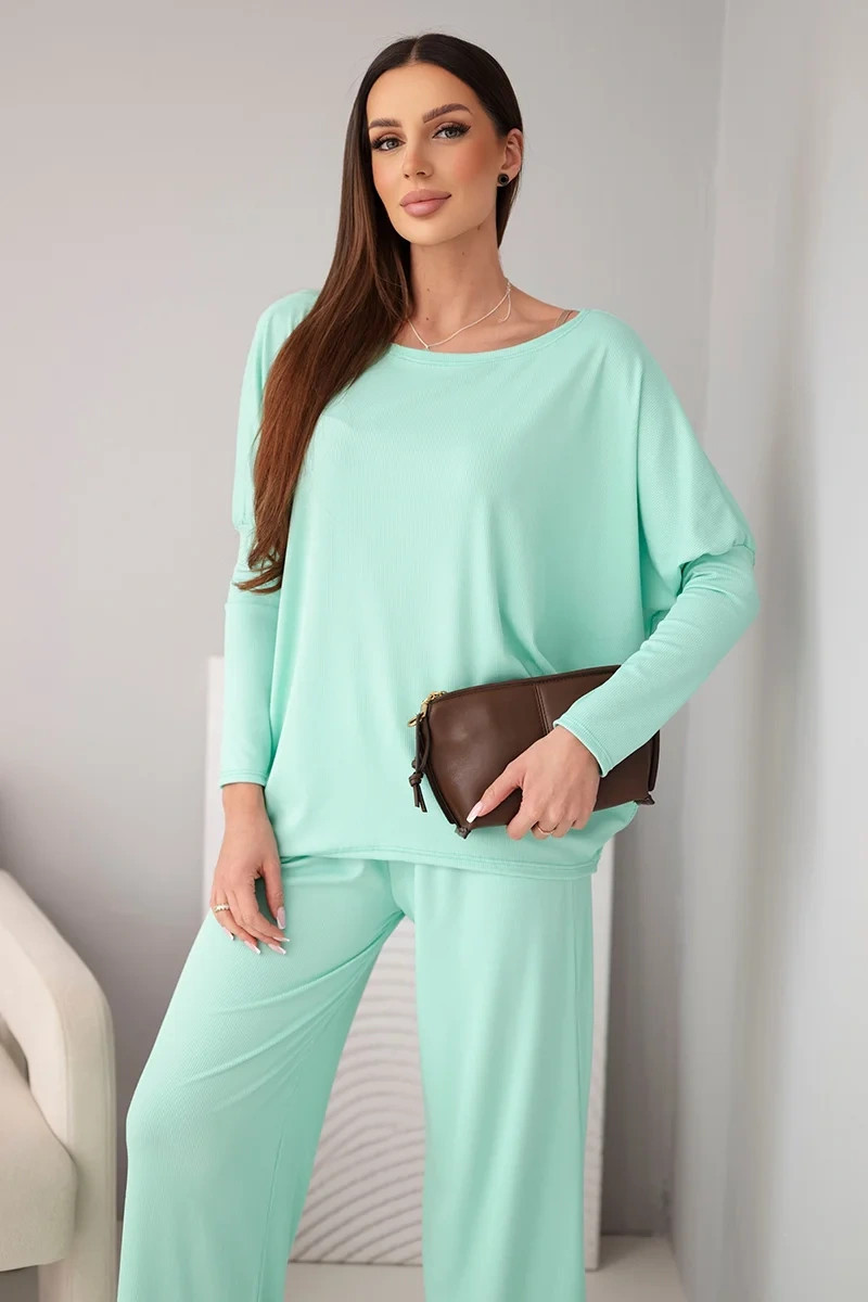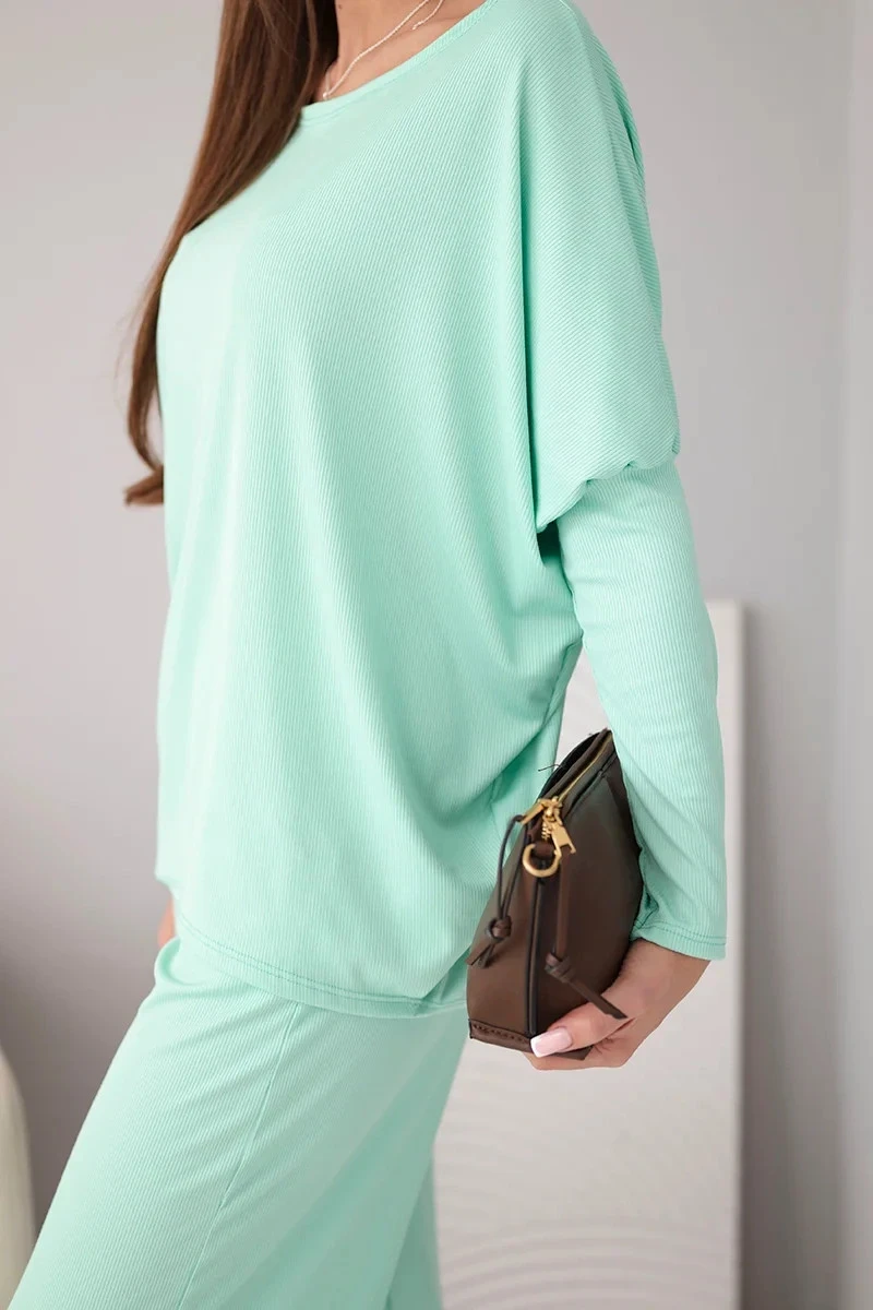 Dámský viskózový komplet s volnou blůzou a kalhotami mátový
