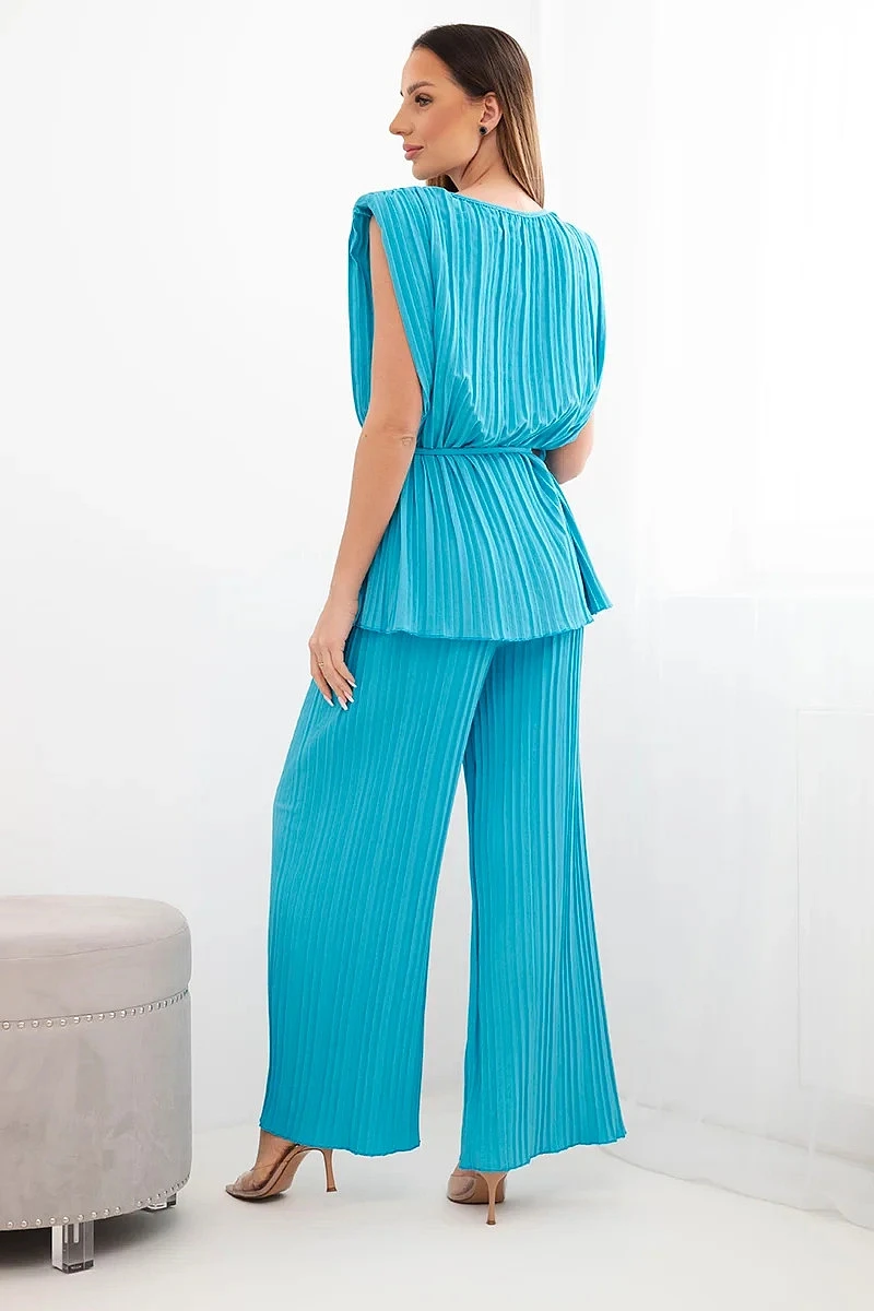 Dámský viskózový komplet se halenkou a širokými kalhotami tyrkysový model 22048847 - K-Fashion