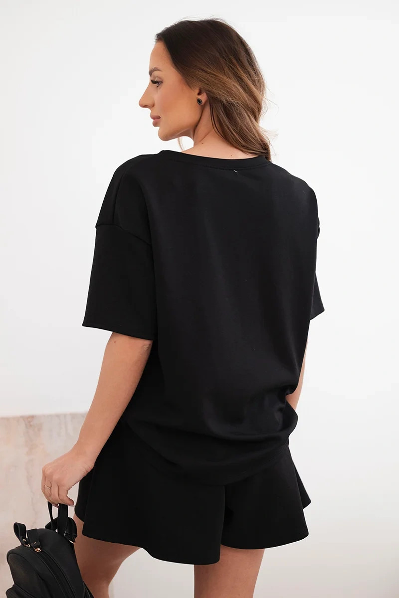 Dámský viskózový komplet v máslové model 22077198 s krátkým rukávem a kraťasy s vysokým pasem černý - K-Fashion