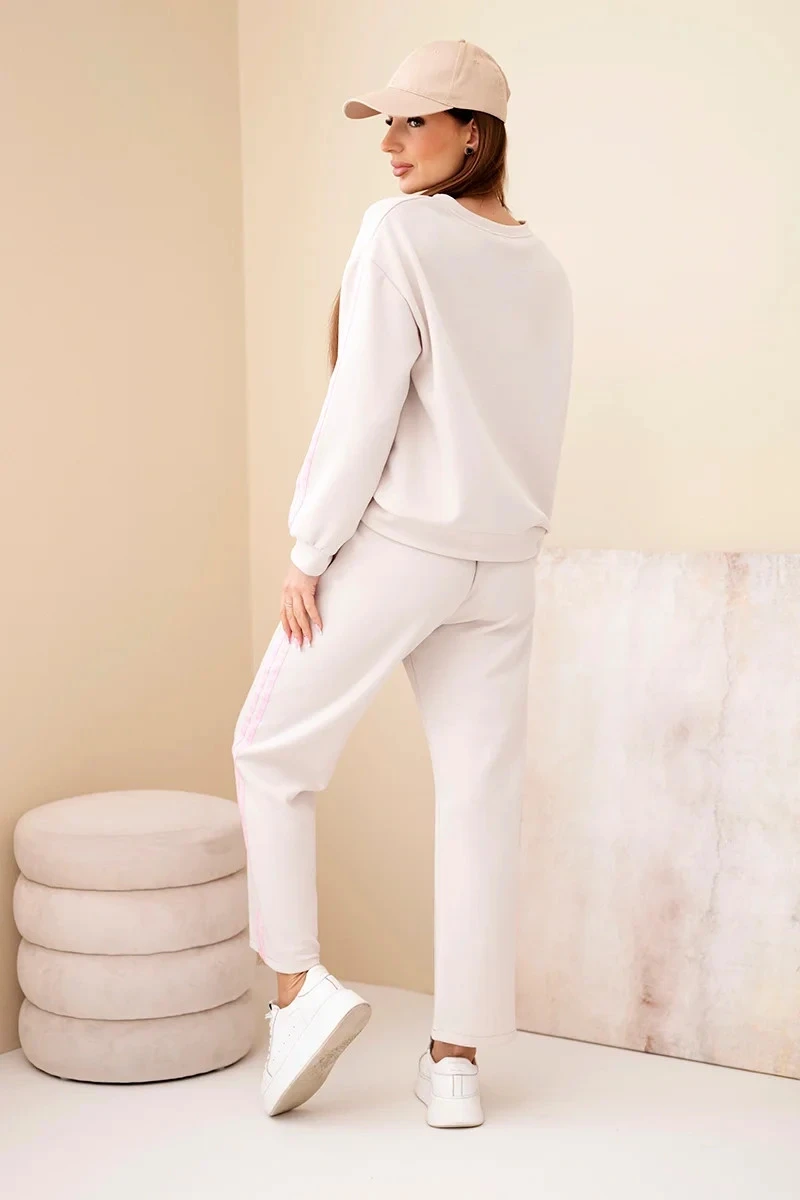 Dámský viskózový komplet v s lampasy béžový model 22011678 - K-Fashion