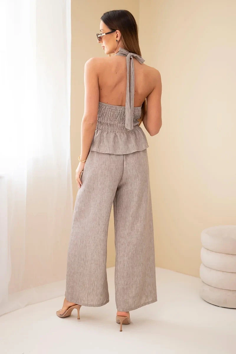 Dámský viskózový komplet: zavazovací top a kalhoty se širokou nohavicí fango