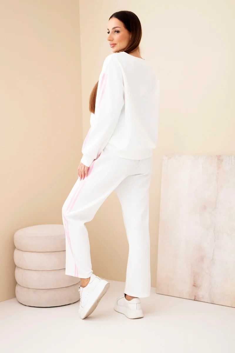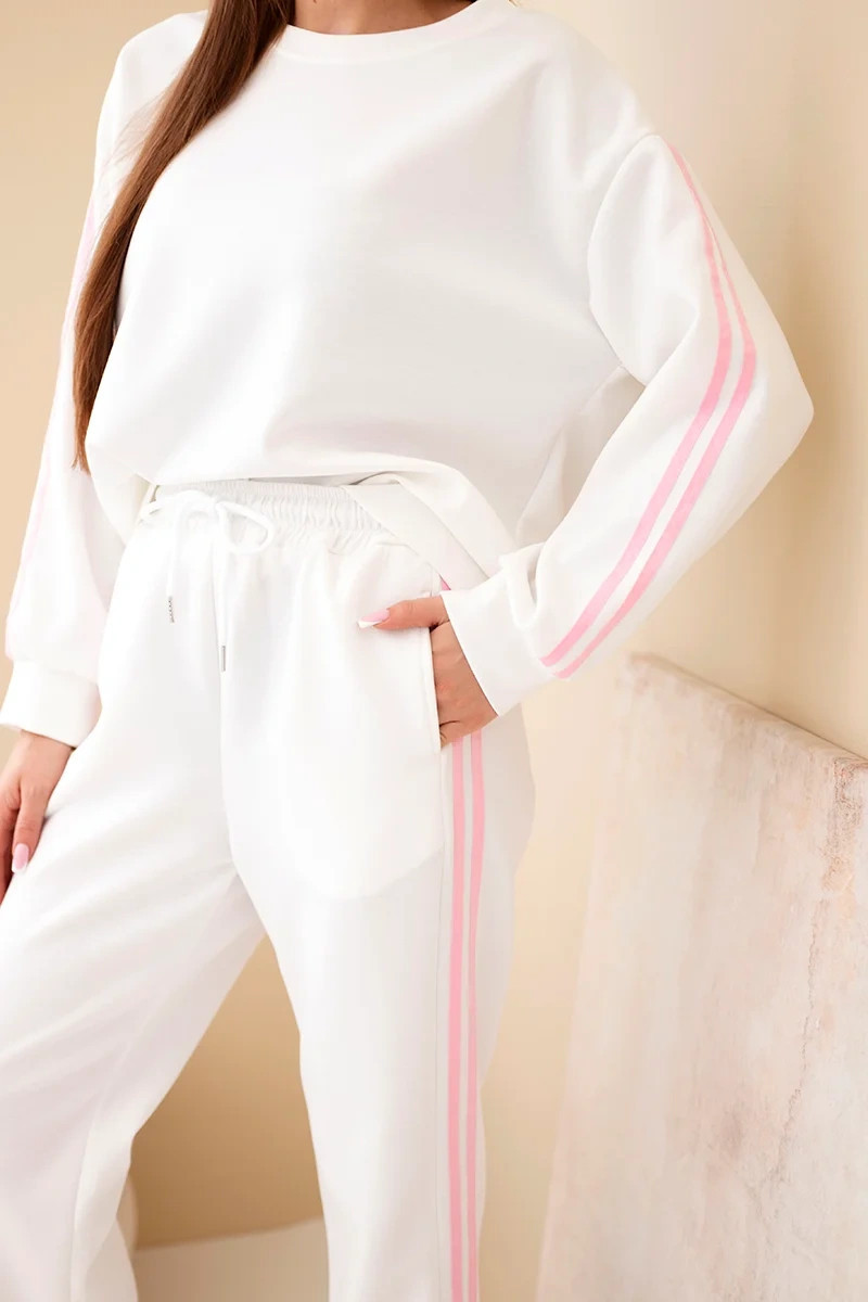 Stylová dámská tepláková souprava je ideální volbou pro ženy, které si cení pohodlí a módního vzhledu v každodenních outfitech. Souprava se skládá z volné mikiny s dlouhým rukávem a kalhot s elastickým pasem a efektními lampasy po bocích. Je to skvělá volba jak na každý den, do práce v neformálním stylu, tak na procházku nebo výlet.