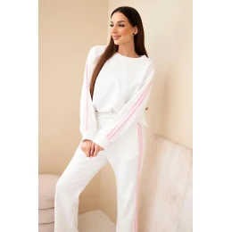 Dámský viskózový máslový komplet s lampasy ecru
