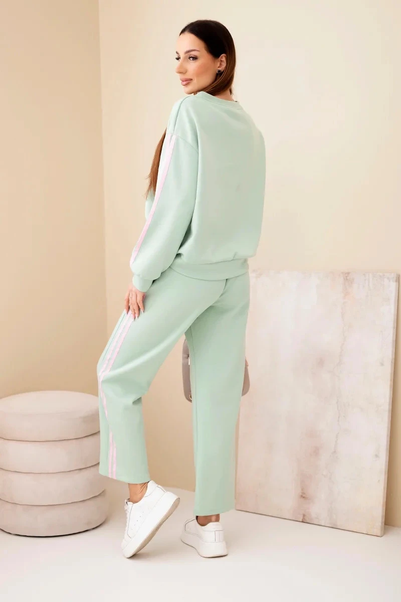 Stylová dámská tepláková souprava je ideální volbou pro ženy, které si cení pohodlí a módního vzhledu v každodenních outfitech. Souprava se skládá z volné mikiny s dlouhým rukávem a kalhot s elastickým pasem a efektními lampasy po bocích. Je to skvělá volba jak na každý den, do práce v neformálním stylu, tak na procházku nebo výlet.