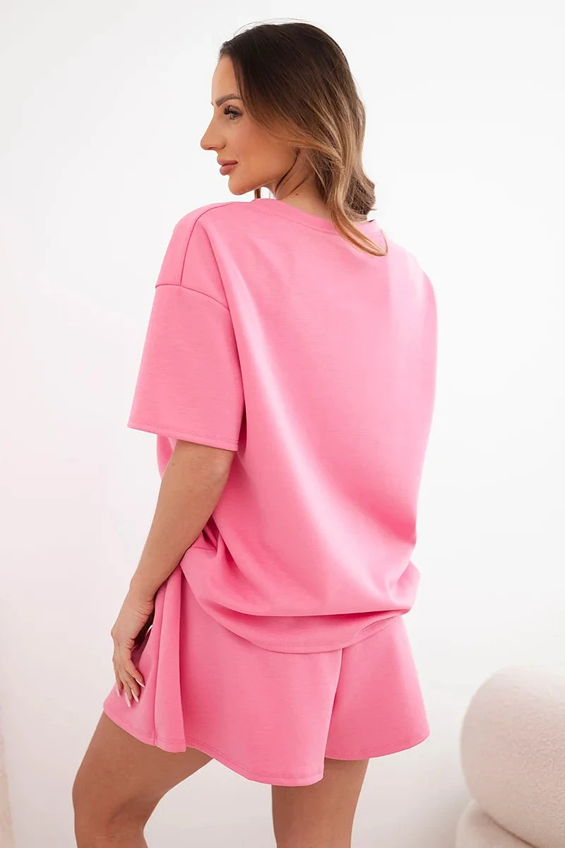 Dámský viskózový model 22077190 komplet s krátkým rukávem a šortky s vysokým pasem růžový - K-Fashion