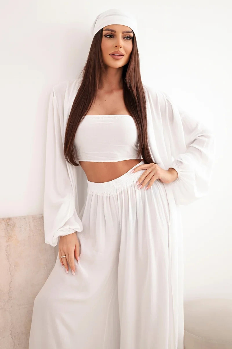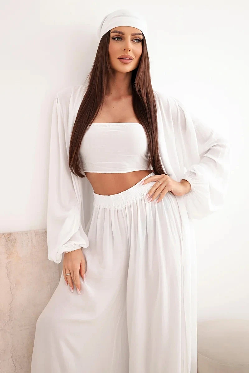 Dámský viskózový model 22084739 komplet v boho stylu bílý - K-Fashion