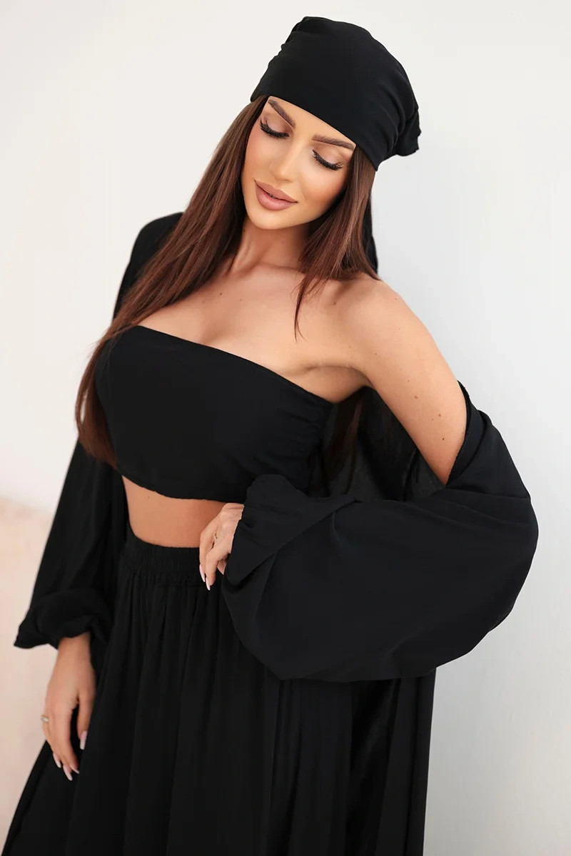 Dámský viskózový model 22084825 komplet v boho stylu černý - K-Fashion