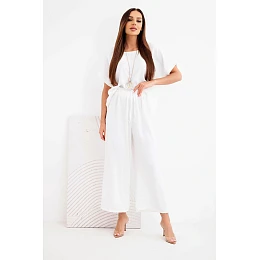 Dámský viskózový model 22128653 halenka s krátkým rukávem a kalhoty se širokou nohavicí ecru - K-Fashion