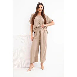 Dámský viskózový model 22128655 halenka s krátkým rukávem a kalhoty se širokou nohavicí fango - K-Fashion