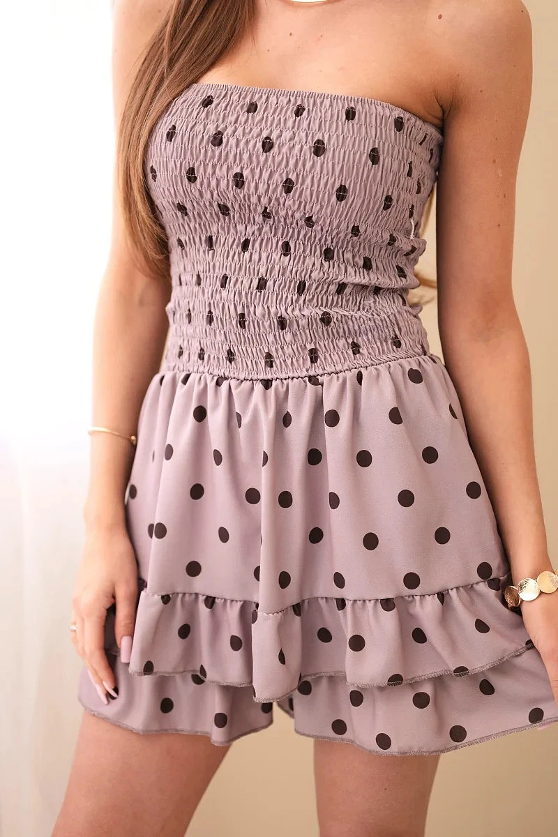 Dámský viskózový overal s puntíky s volánem fango