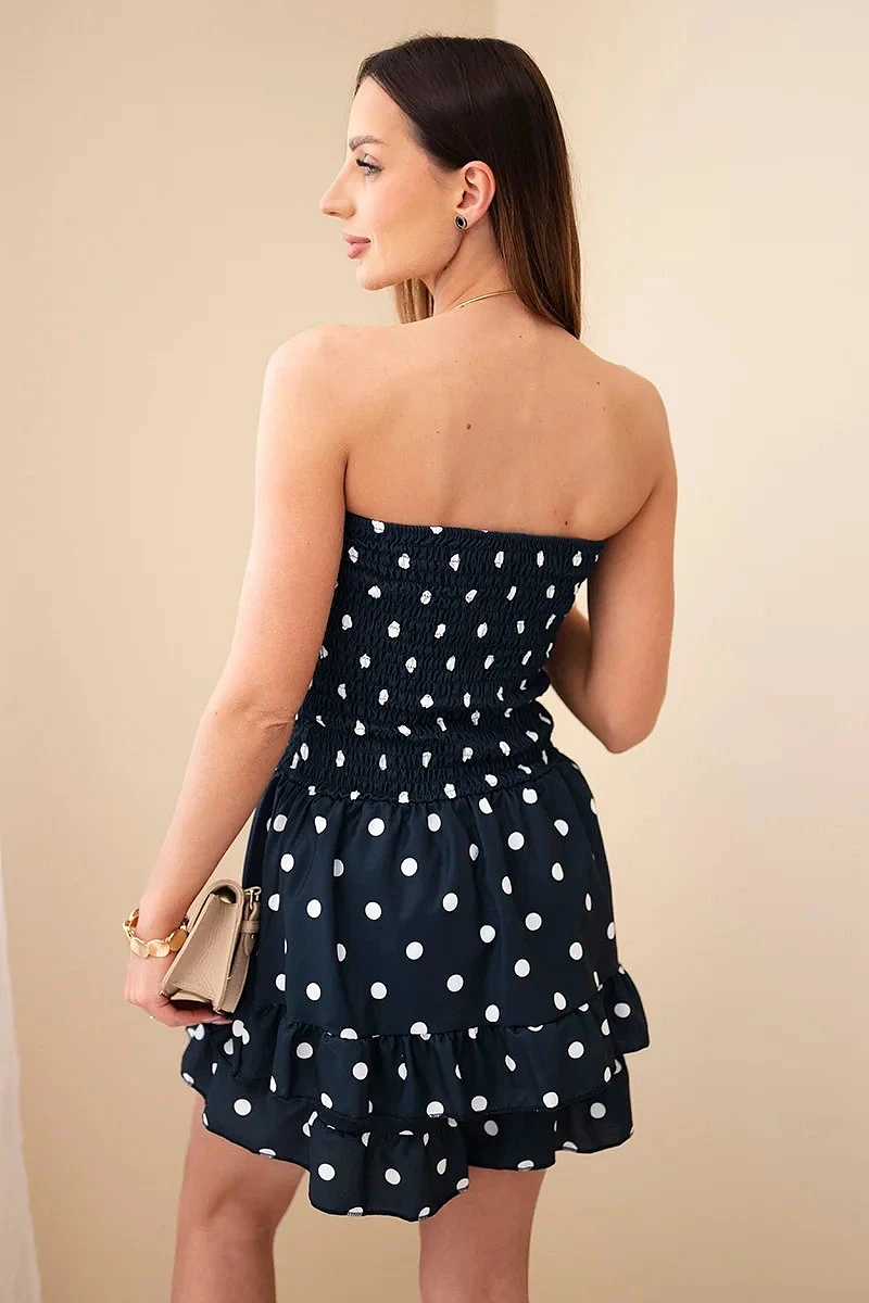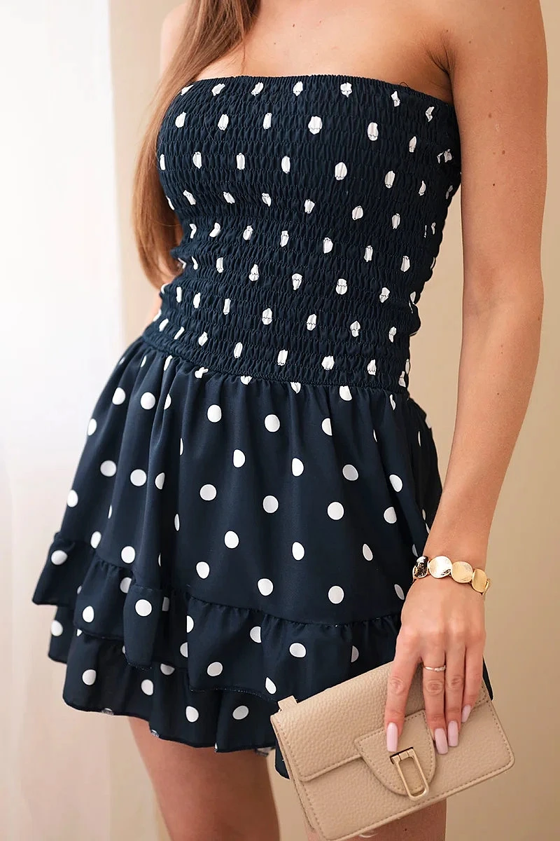 Dámský viskózový overal s puntíky s volánem tmavě modrý