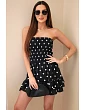 Stylový a mimořádně ženský dámský overal ve střihu španělky je ideální volbou na teplé dny. Model vyniká elastickým, řaseným vrškem, který se skvěle přizpůsobí postavě a zvýrazní poprsí i pas. Odhalená ramena dodávají celku lehkost a jemnou eleganci, zatímco volnější spodní část zakončená volánem přidává půvab a volnost pohybu. Vzor v nadčasové puntíky způsobuje, že overal působí módně a svěže a skvěle zapadá do letních trendů.