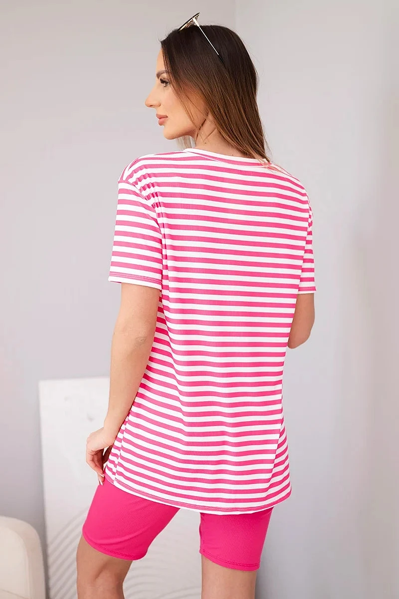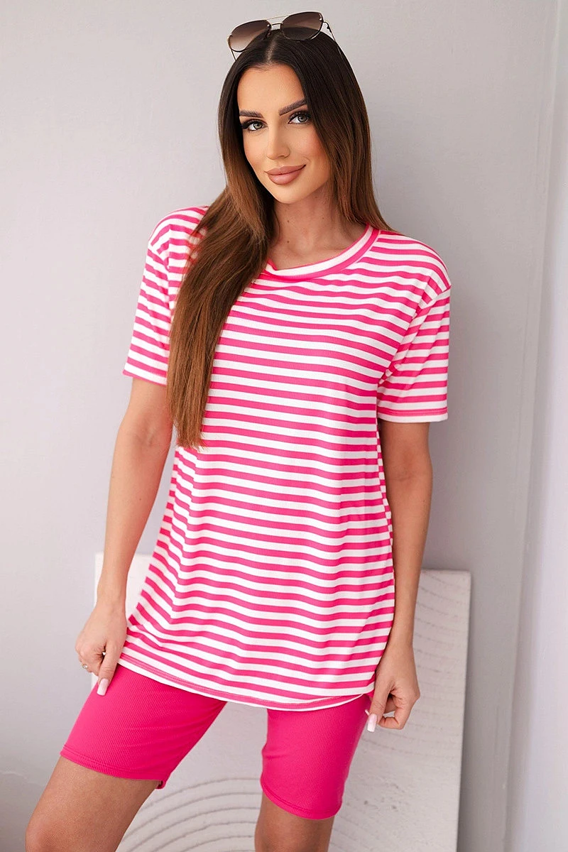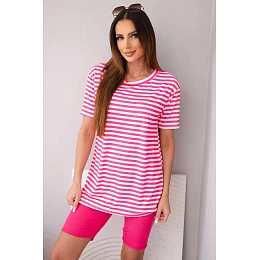 Dámský viskózový pruhovaný komplet s krátkým rukávem a šortkami fuchsiová