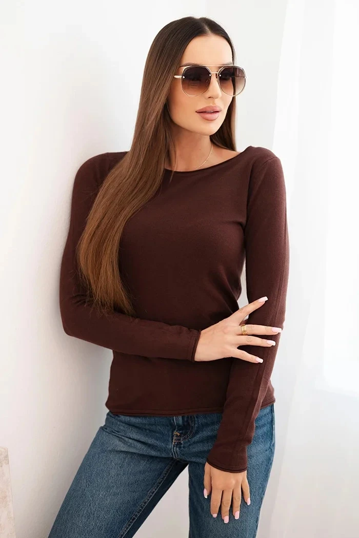 Dámský viskózový svetr s kulatým výstřihem a model 21412202 střihem hnědý - K-Fashion