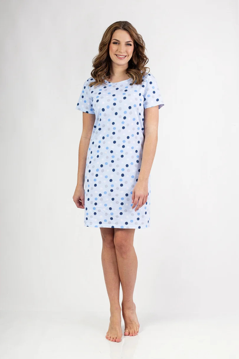 Damska koszulka Regina 147to idealne połączenie wygody i klasycznego stylu. Wykonana w 100% z wysokiej jakości bawełny, zapewnia przewiewność oraz miękkość, dzięki czemu doskonale sprawdza się na co dzień i do spania. Krótki rękaw gwarantuje komfort noszenia w cieplejsze dni. Prosty, uniwersalny krój pasuje do każdej sylwetki, a naturalna tkanina jest delikatna dla skóry i trwała nawet po wielu praniach.