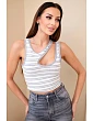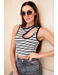 Stylový dámský top žebrovaný v pruzích je ideální volbou na léto pro ženy, které mají rády moderní a ženské střihy. Přiléhavý střih krásně zvýrazňuje postavu a efektní výstřih dodává celku výjimečný charakter. Kontrastní lemování a pruhovaný vzor zajišťují, že model přitahuje pozornost a skvěle zapadá do aktuálních trendů.