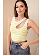 Dámský žebrovaný pruhovaný top bez rukávů s výstřihem zelená