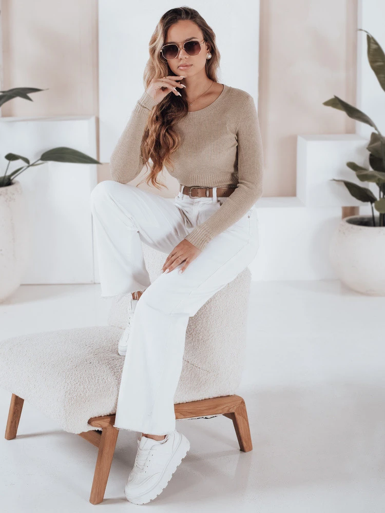Dámský žebrovaný svetr NOLVIE beige FashionStreet MY2496