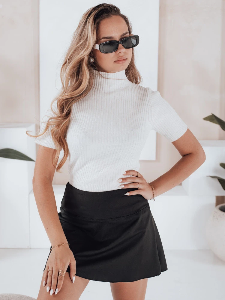 Dámský žebrovaný svetr s krátkým rukávem white Dstreet model 21991050 - FashionStreet