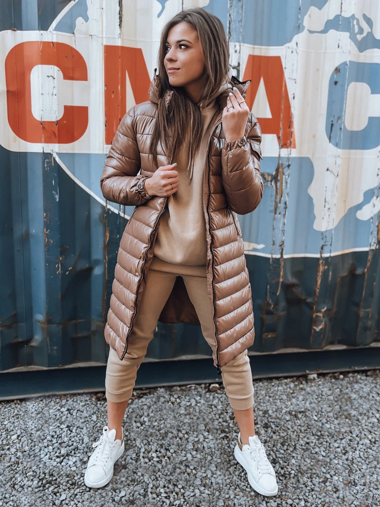 Dámský zimní kabát dlouhý LESSI camel FashionStreet TY3354