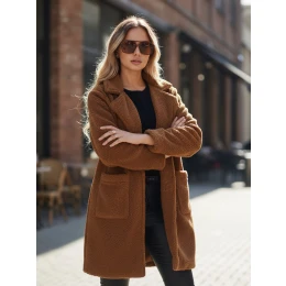 Futrzany płaszcz typu teddy to ciepła propozycja na zimę z wyraźnie miękką strukturą i komfortowym, lekko oversize’owym krojem. Klasyczny kołnierz z klapami oraz wygodne zapięcie na napy ułatwiają codzienne użytkowanie, a pojemne kieszenie pozwalają ogrzać dłonie i schować drobiazgi. Długość do połowy uda zapewnia dobrą osłonę przed chłodem bez ograniczania swobody ruchów.