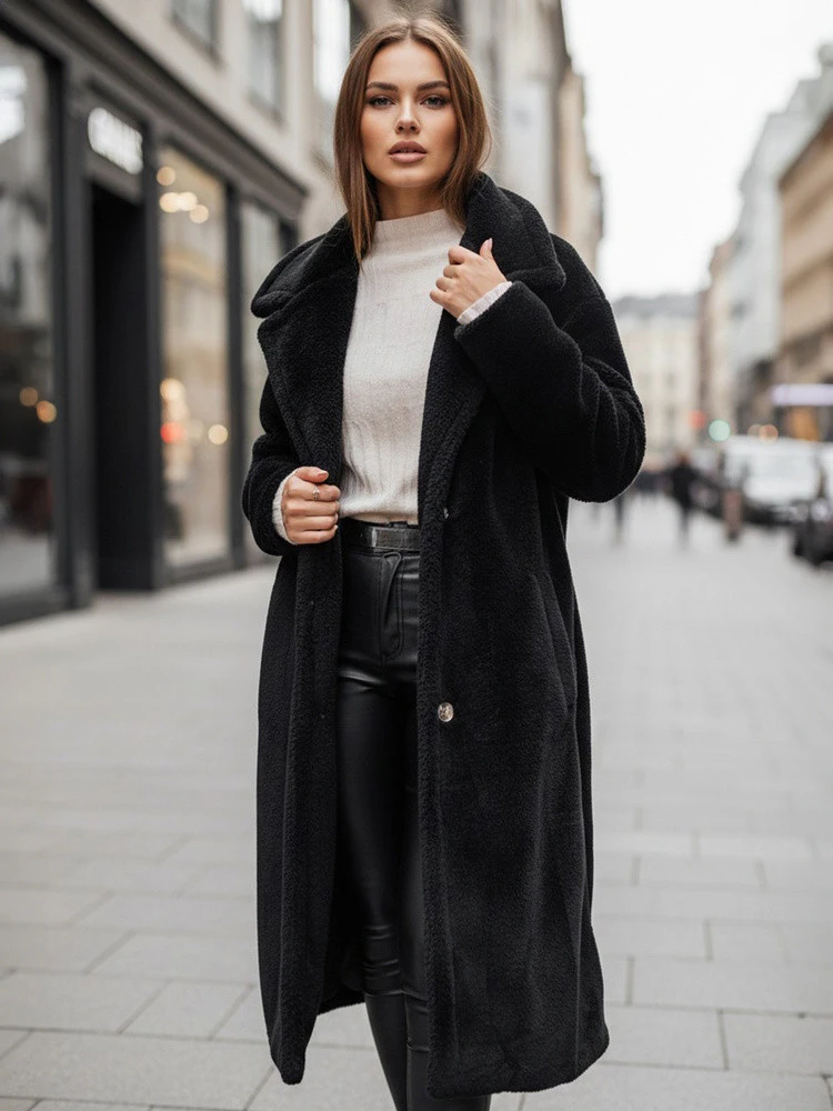 Dámský zimní kabát teddy s kožešinou dlouhý černý FashionStreet NY0760z