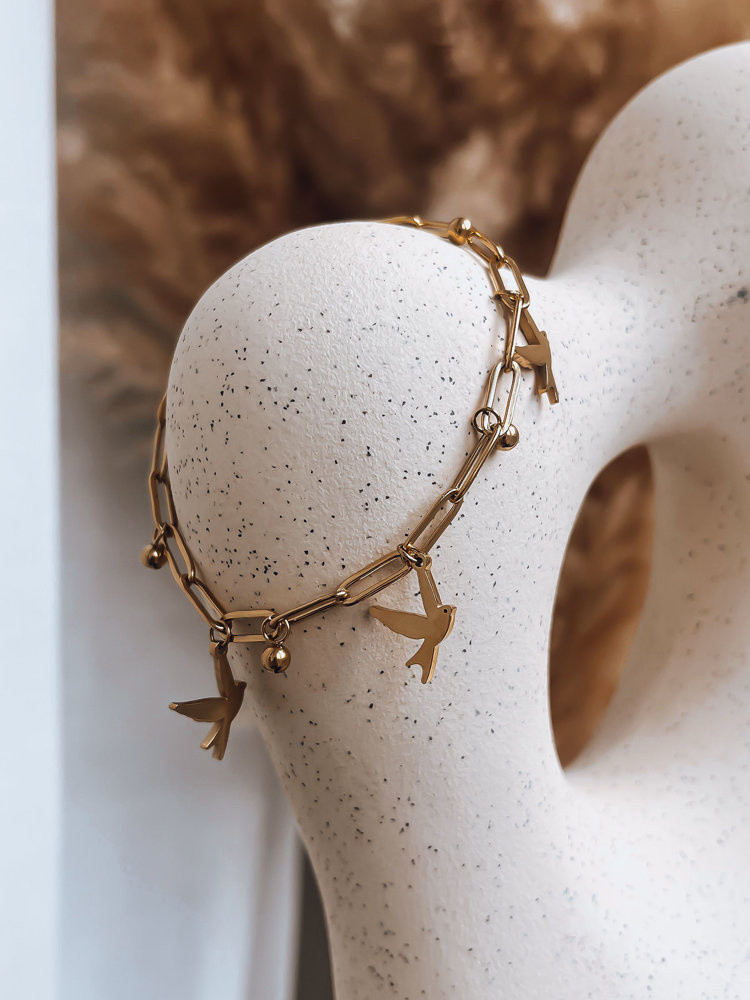 PAJARO - úžasný náramek s motivem ptáčka, ideální pro všechny stylové ženy. Zapíná se na karabinku s několikacentimetrovou regulací.
