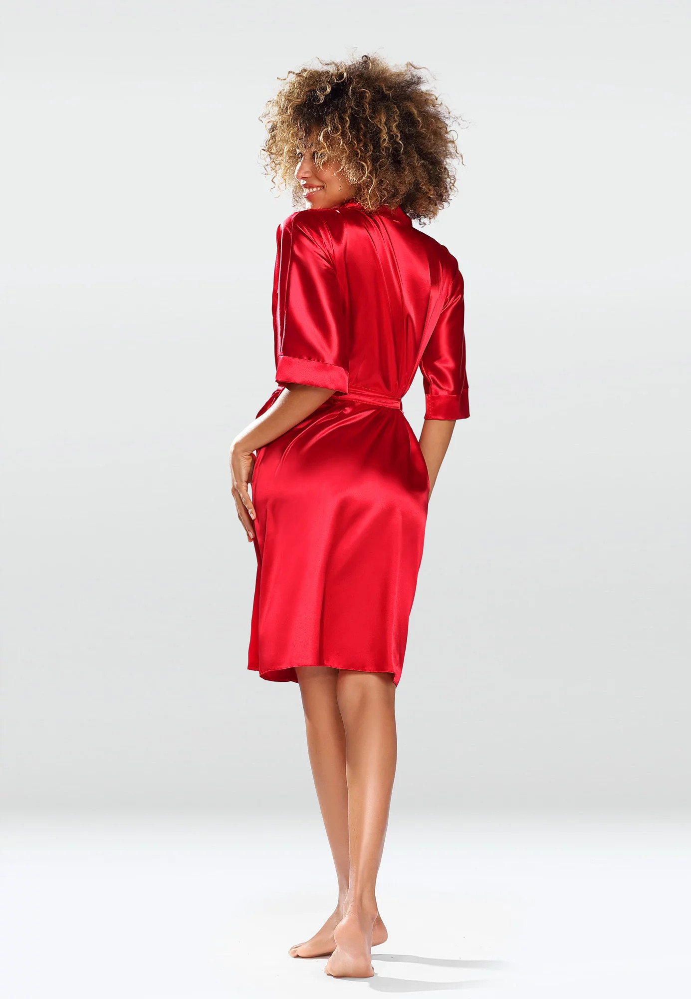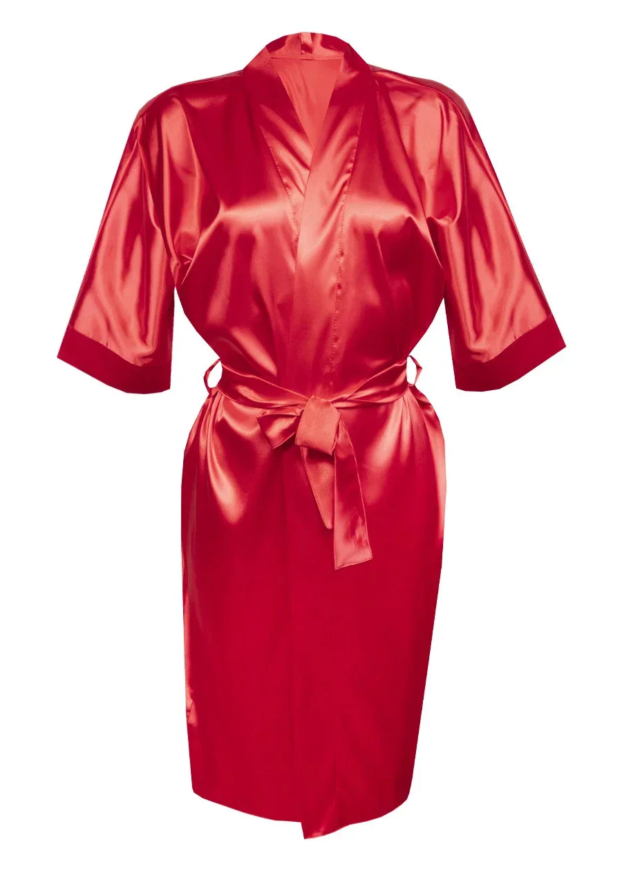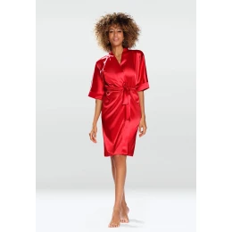 Pohodlný dámský saténový župan DKaren 90 elegantního střihu.