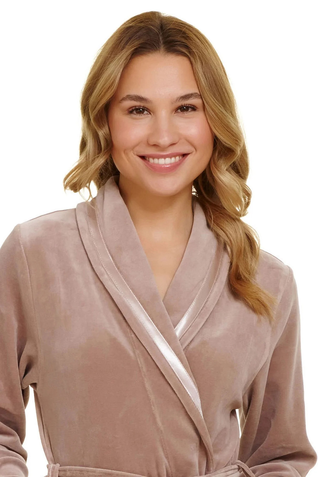 Dámský župan 1078 beige plus Doctornap - béžová barva - vyrobený z velmi kvalitního a příjemného materiálu - dlouhé rukávy - na zavazování v pase - antibakteriální, protiplísňové a termoregulační vlastnosti - délka pod kolena