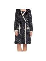 Pohodlný dámský župan pro krásné chvíle a pocit pohodlí. Tento župan s potiskem puntík, dlouhým rukávem a zavinovacím střihem je vyrobený z lehkého a hřejivého polyesterového vlákna, které je objemné, měkké a příjemné na dotek, dobře udržuje tělesnou teplotu a rychle schne.