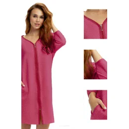 Dámský župan ušitý z příjemné bavlny s reliéfním vzorem, s 3/4 rukávy. Zapínání na zip, dlouhý rukáv. Na úrovni boků pohodlné kapsy.