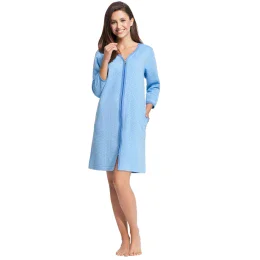Dámský župan 214 Luna - vyrobeno z kvalitní bavlny s vytlačovaným vzorem příjemné na dotyk - světle modrá barva - dlouhé rukávy - zapínání na zip - na bocích kapsičky - délka nad kolena