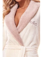 Dámský župan 2314 Duo cream L&L - krémová barva - z měkké tkaniny velmi příjemné na dotek - na prsou výšivka - s šálovým límcem v bílé barvě - na bocích kapsy - zavazování na pásek