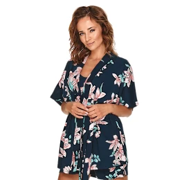 Dámský župan 2683 Marija Taro - tmavě modrá barva se vzorem - materiál příjemný na dotek - s kimonovými rukávy - zavazování na pásek - délka nad kolena