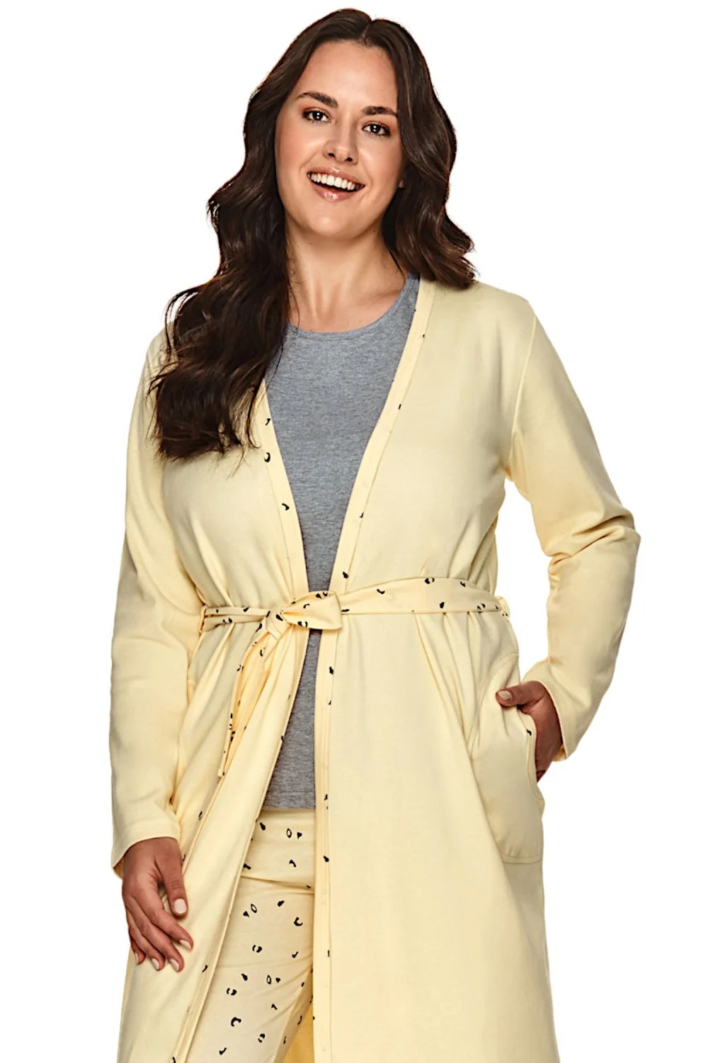 Dámský župan 2714 Taro - žlutá barva - vyrobené z vysoce kvalitní a měkké bavlny - s dlouhými rukávy - zavazování na pásek - délka nad kolena