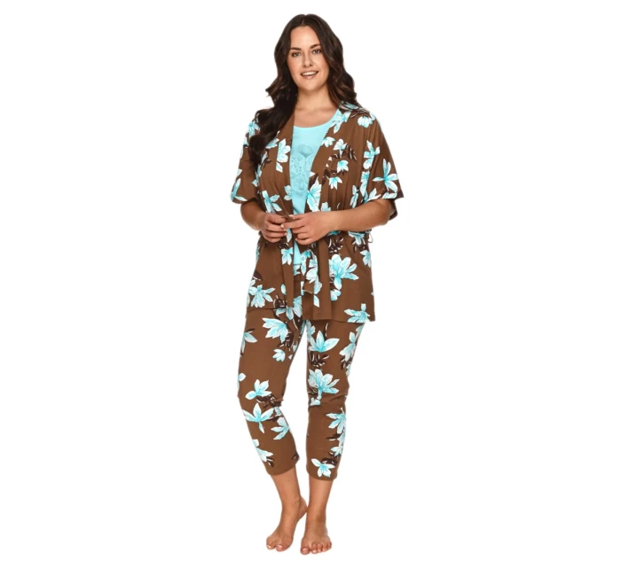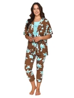 Dámský župan 2715 Taro - hnědá barva se vzorem - vyrobené z vysoce kvalitní a měkké bavlny - s krátkými rukávy - zavazování na pásek - délka nad kolena