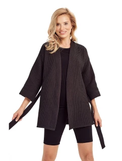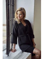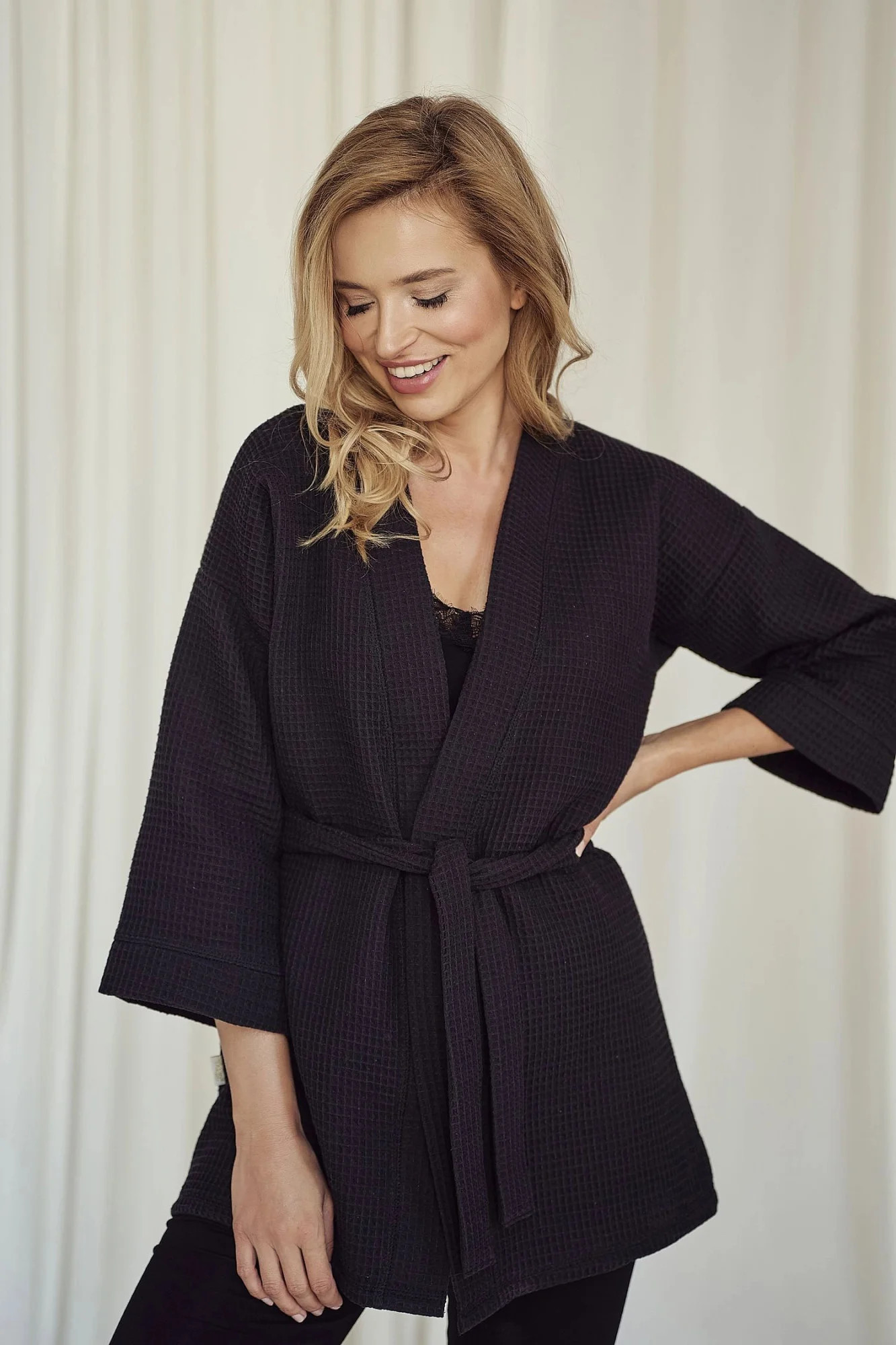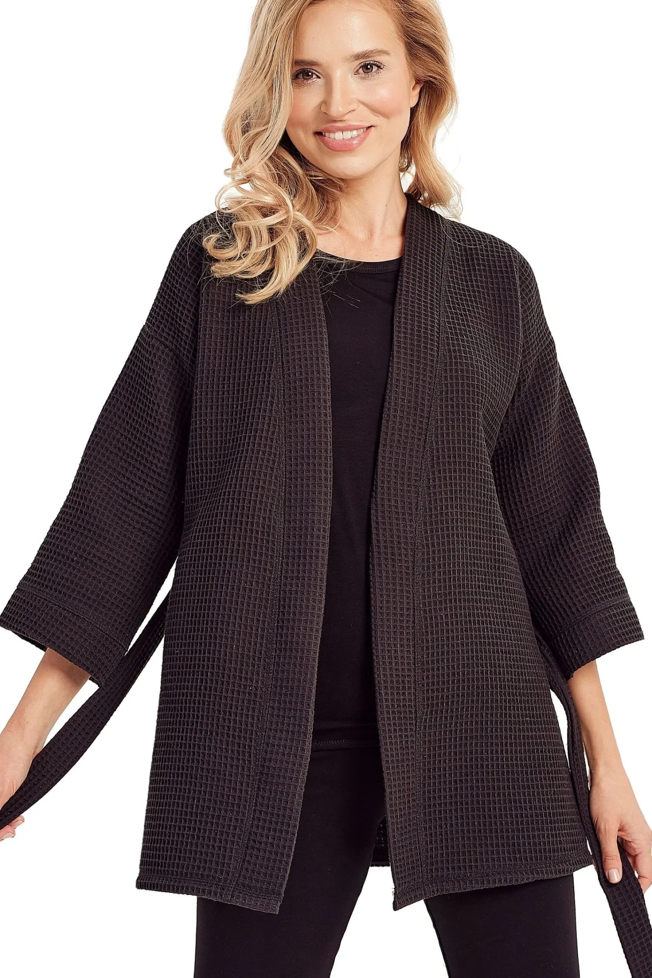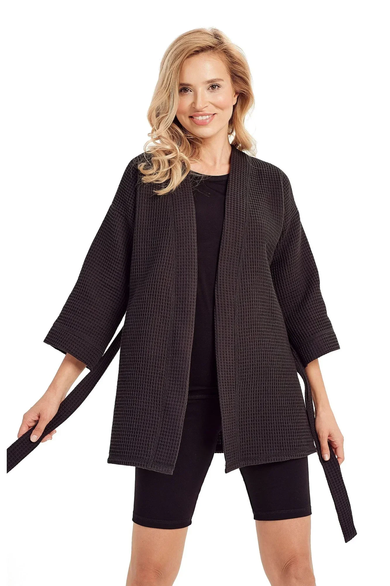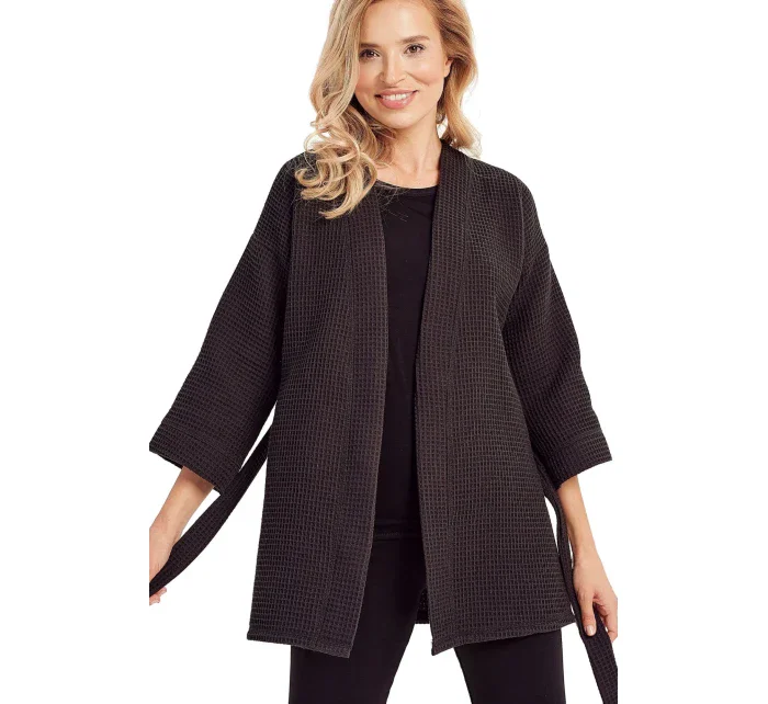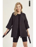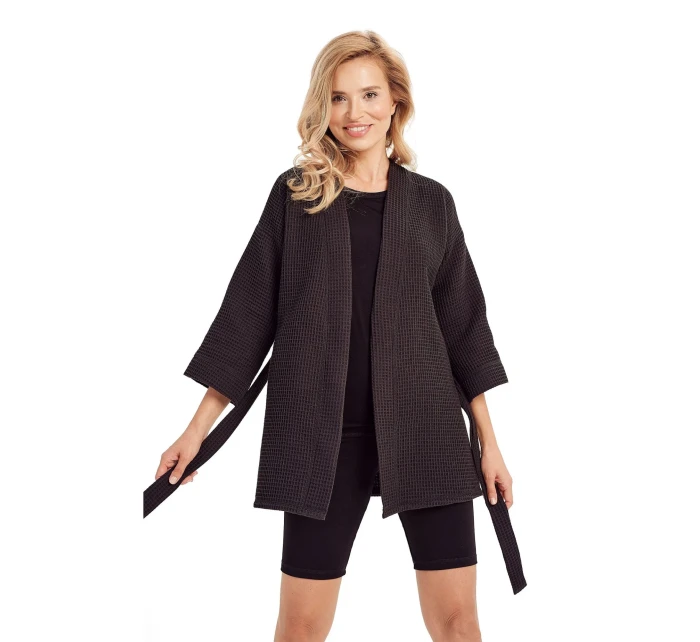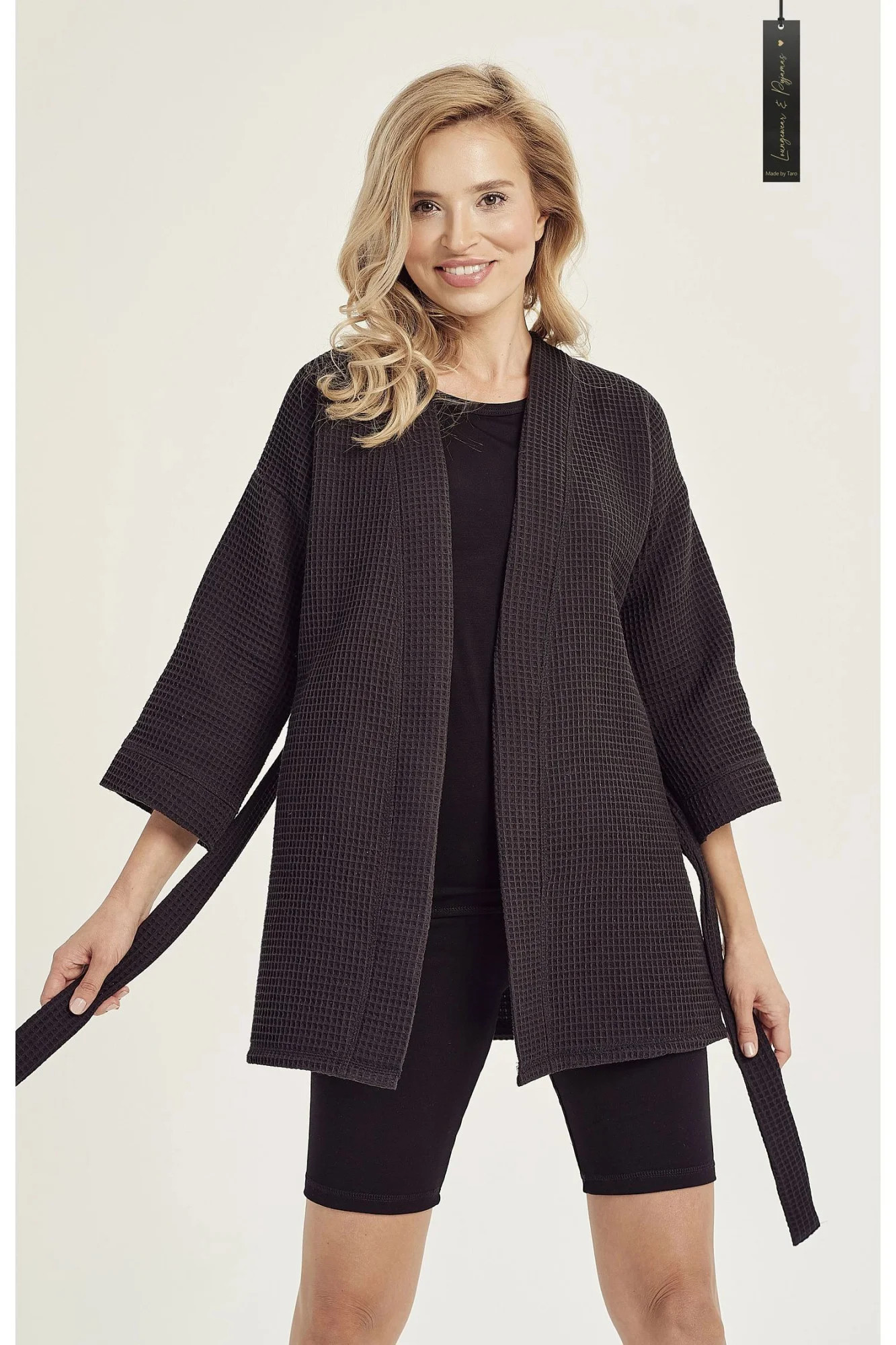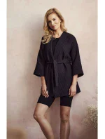 Dámský župan 3056 TARO - černá barva - z vysoce kvalitní a měkké protlačované bavlny - tříčtvrteční rukávy - zavazování na pásek - délka nad kolena