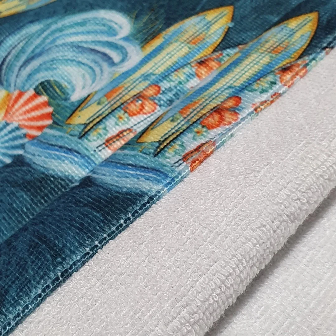 Vnitřní stranu tvoří bambusové froté, vnější strana z mikrovlákna je hladká s digitálním potiskem.