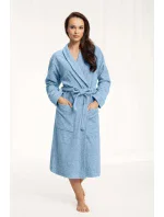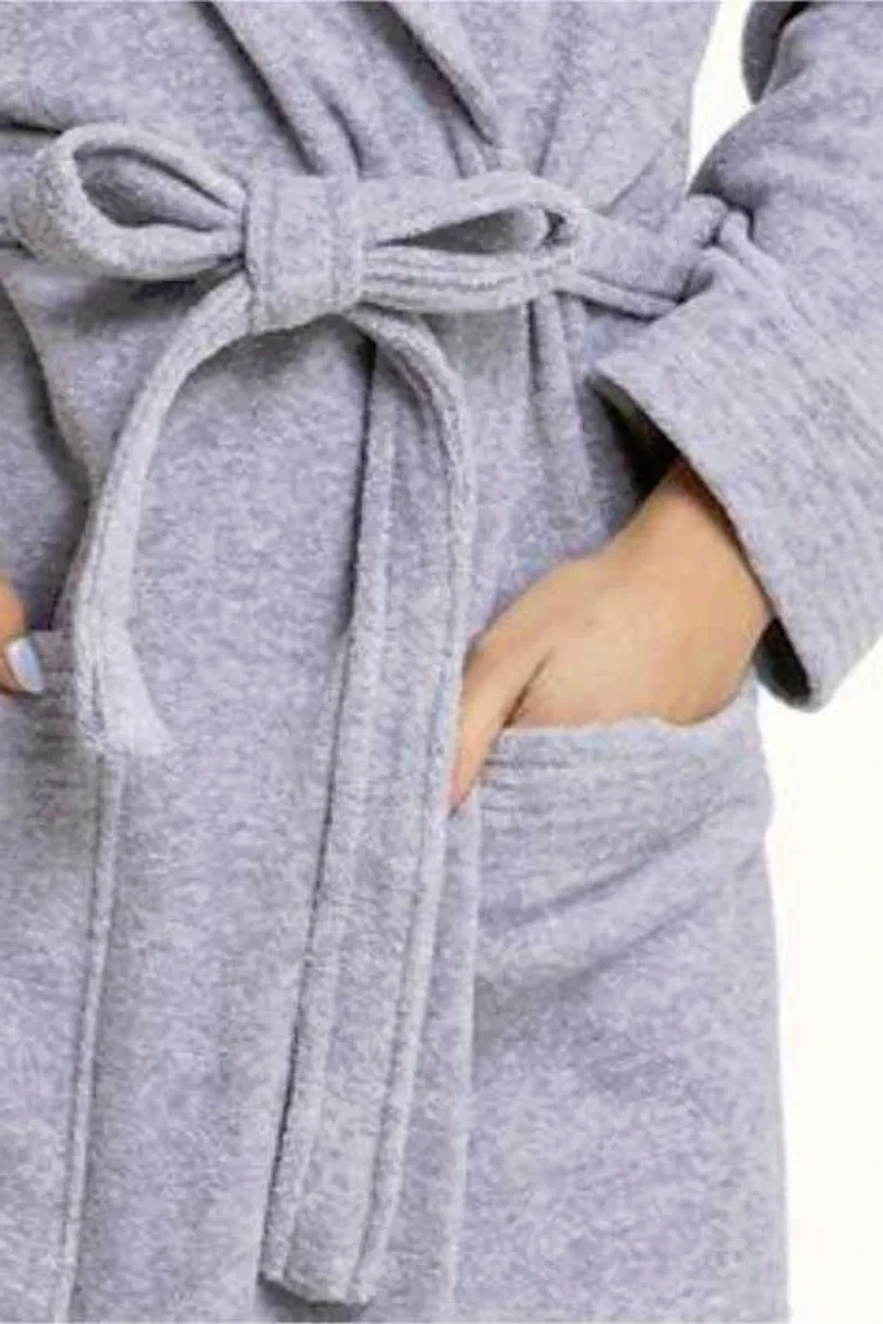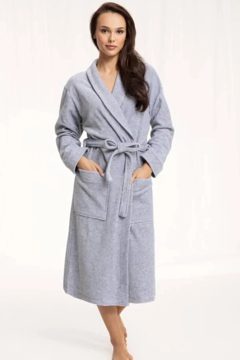Župan je vyrobený z bavlněné tkaniny, na bocích má kapsy a v pase se zavazuje.