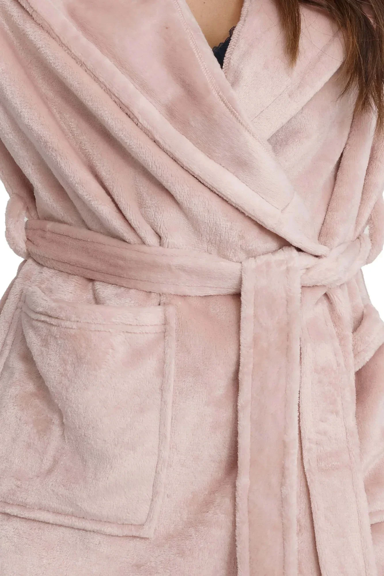 Dámský župan 41064 Glass Henderson - materiál příjemný na dotek - starorůžová barva - s kapucí s oušky - délka nad kolena - s kapsami - na zavazováníMateriálové složení: 100% polyester