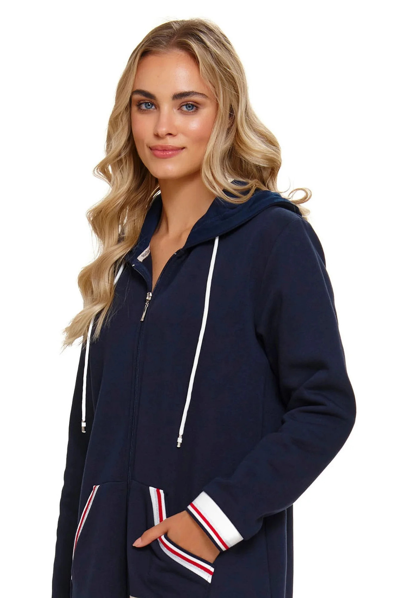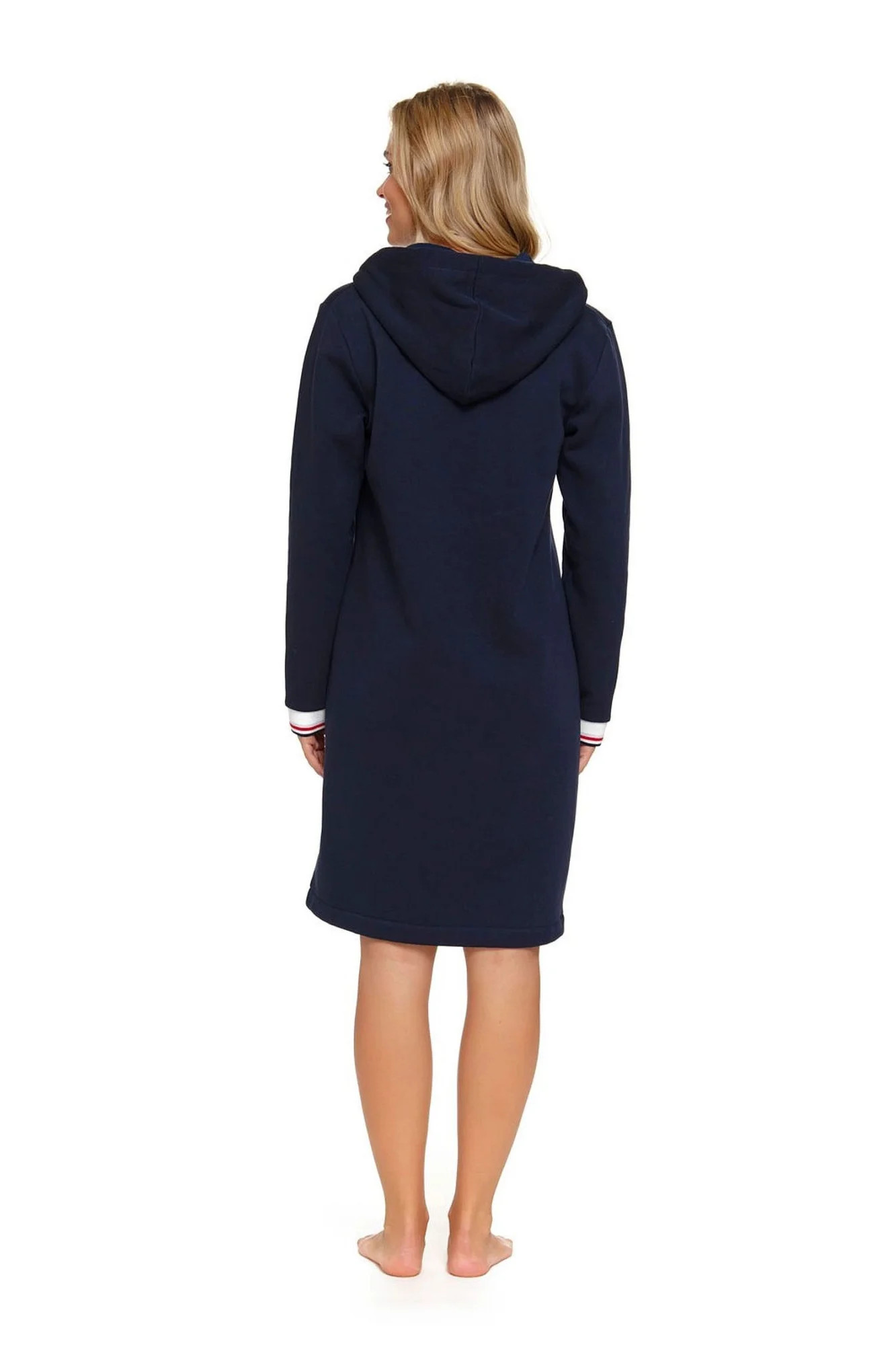 Dámský župan 4508 blue Doctornap - tmavě modrá barva - z vysoce jakostní bavlny - zapínání na zip - s kapucí - s kapsami - délka nad kolena